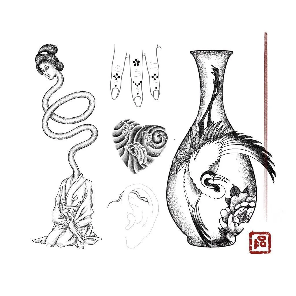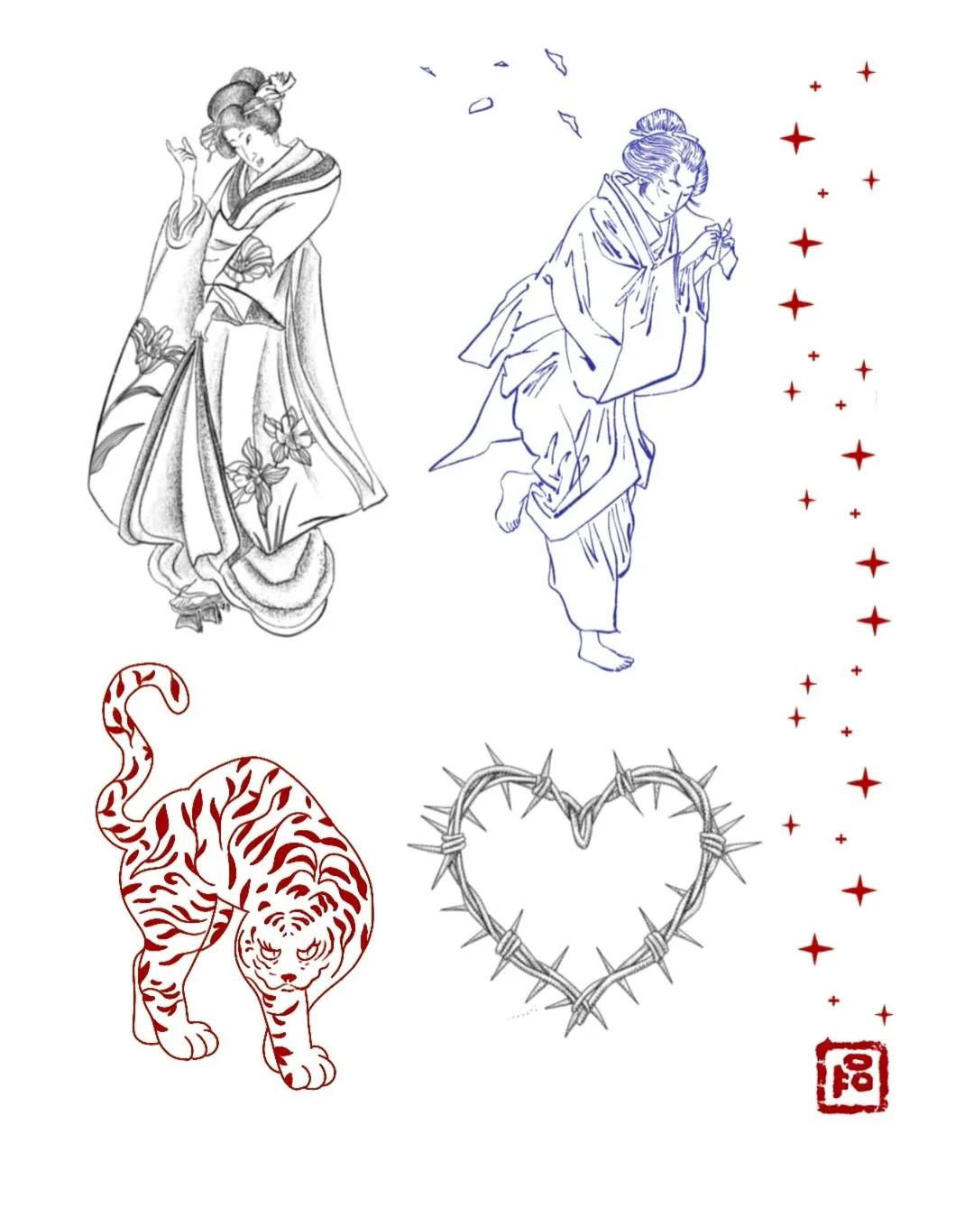 J’ai créé une collection de flashs exclusifs qui n’attendent que toi. Ces dessins uniques sont prêts à être tatoués et peuvent être adaptés selon tes envies de taille ou de couleur.